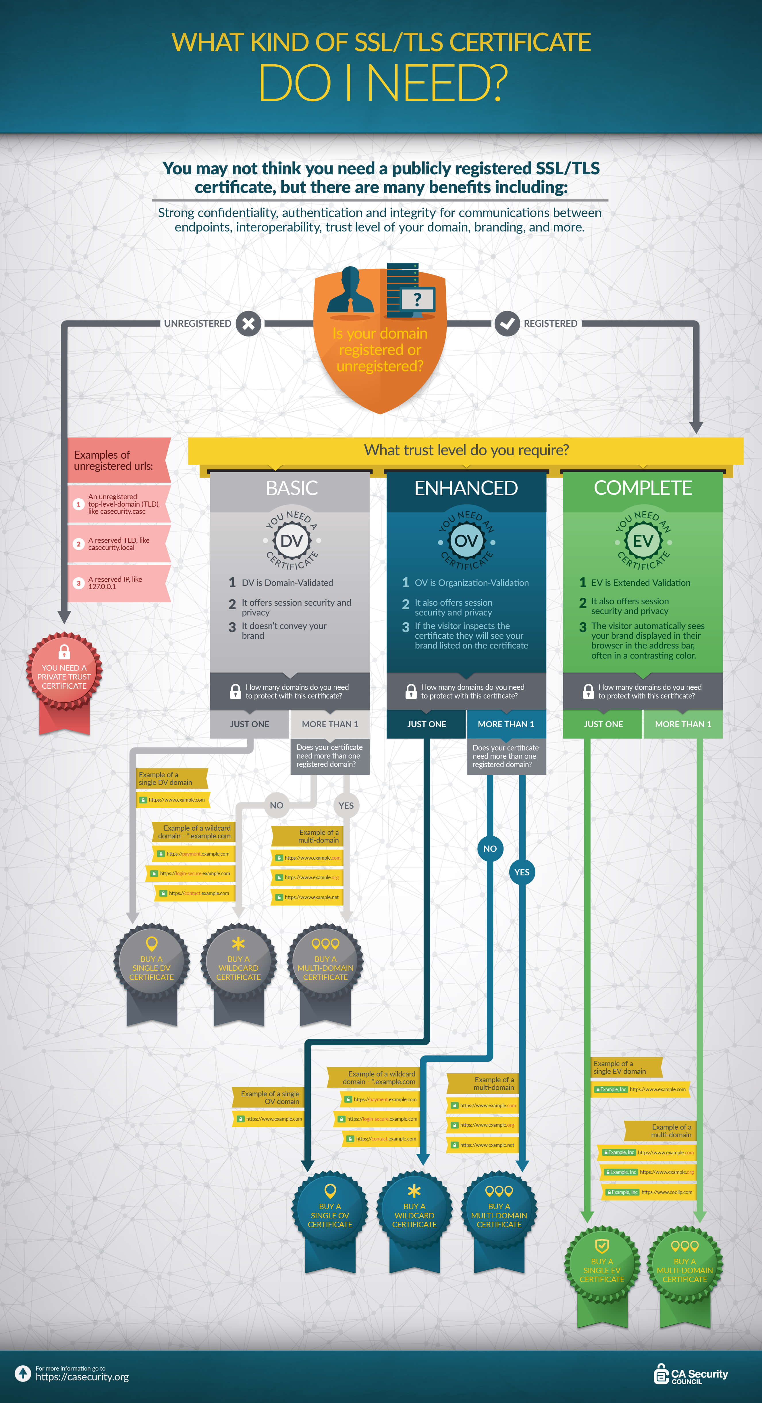 The following infographic may help you to assess which SSL/TLS certificate you need: