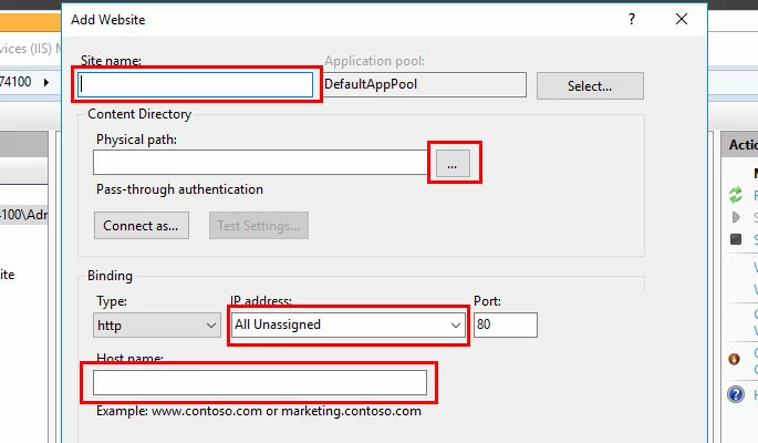 - Physical Path: Click ... and choose the directory where the site's files will be stored.